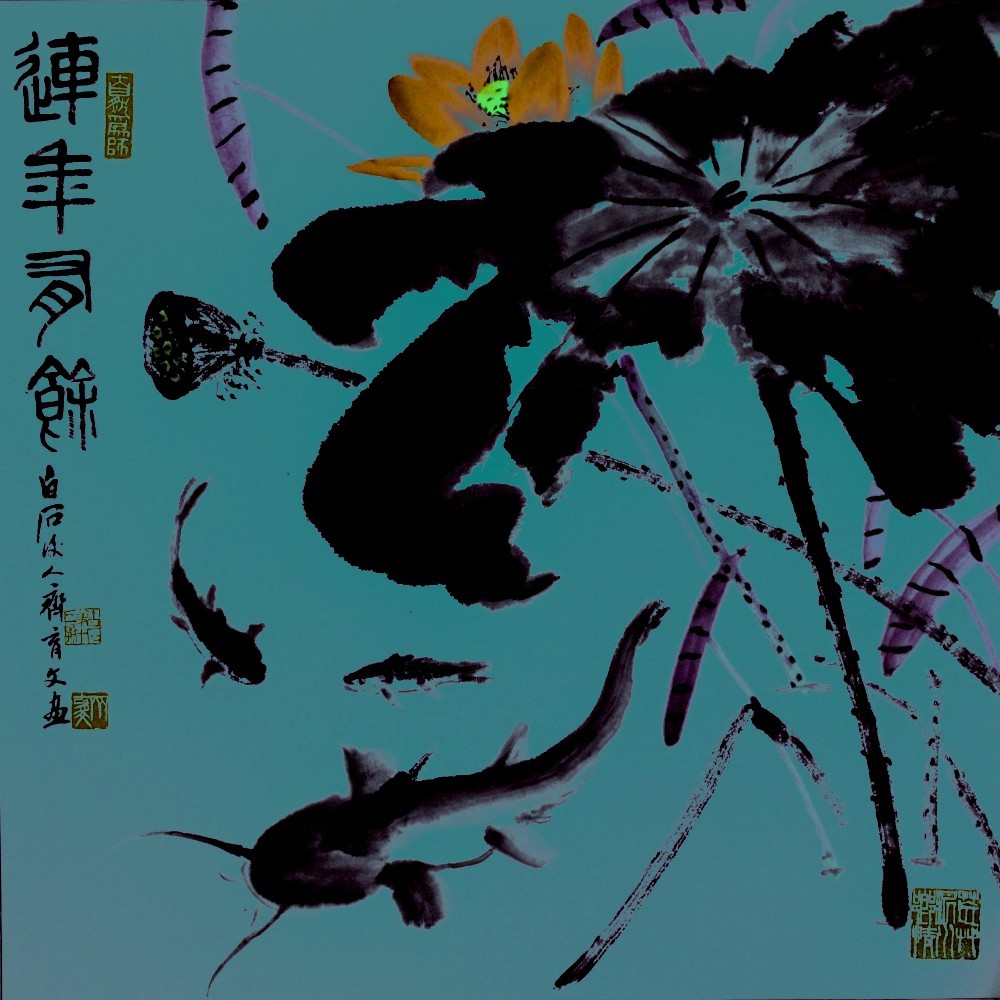 齐白石嫡孙齐育文作品《连年有鱼》。
